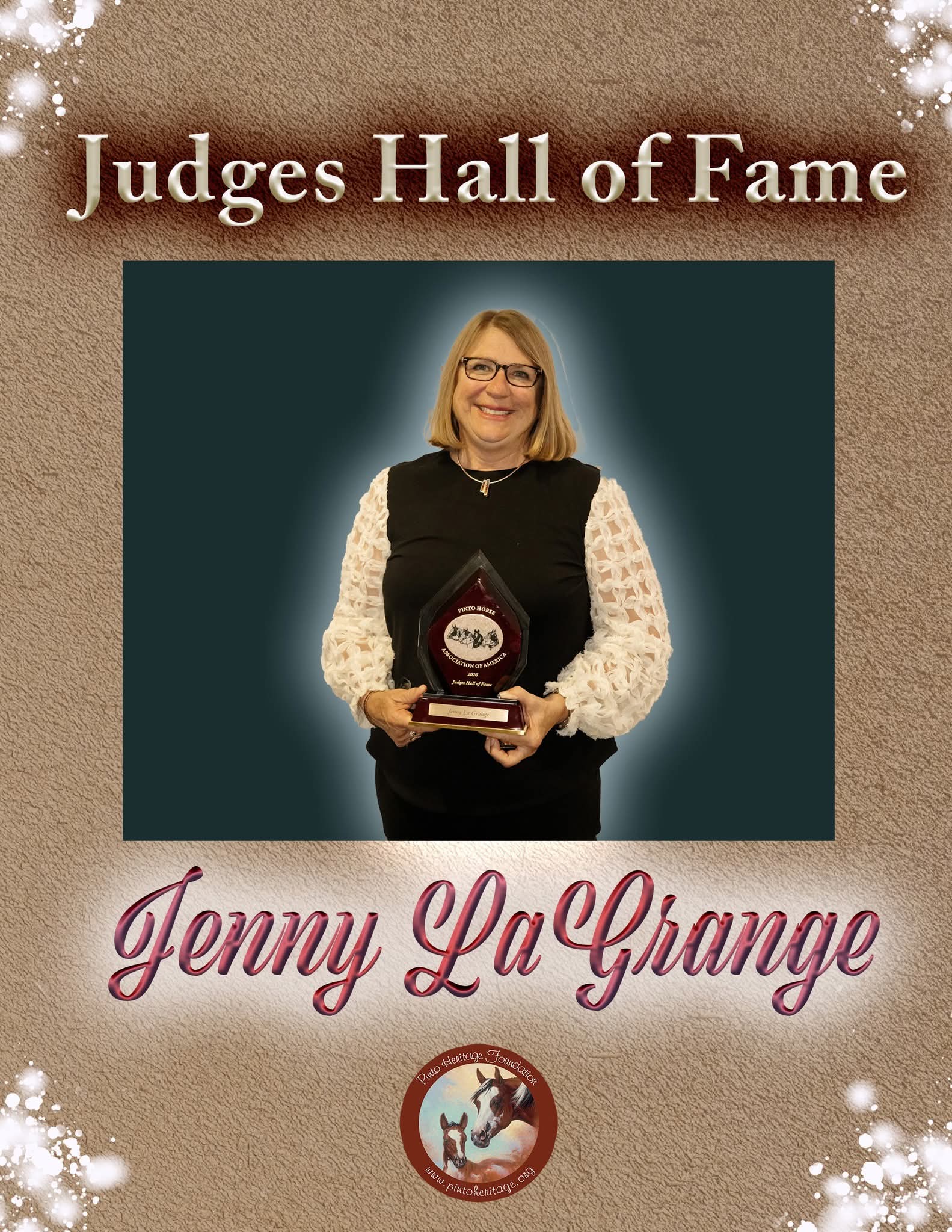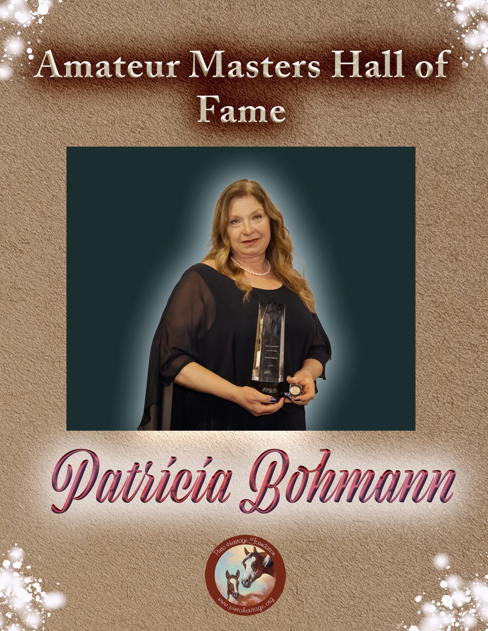 The Hall of Fame Banquet serves to honor and induct nominated PtHA Members and Equine to the PtHA Hall of Fame. Before the banquet, the Pinto Heritage Foundation Auction is held to raise money toward Pinto Heritage Foundation Programs, including all scholarships, the Professional Horsemen’s Crisis Fund, and more. Banquet tickets are available for purchase. Contact the PtHA Office or download the Convention Registration form.